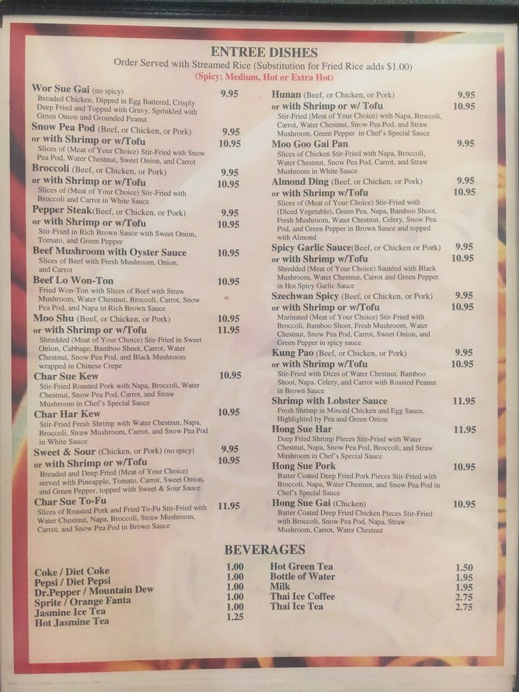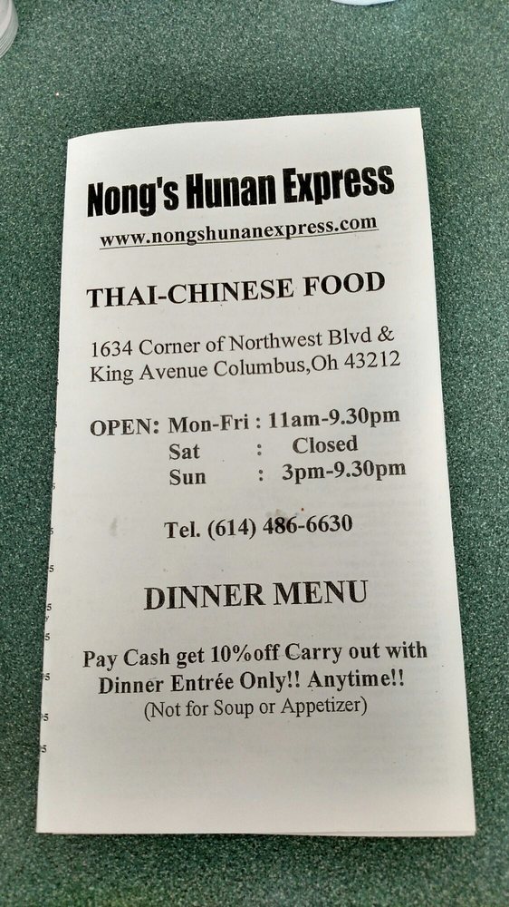 Nongs Hunan Express is a hidden gem that offers a unique blend of Thai and Chinese cuisine in Columbus, Ohio. The menu is diverse, featuring appetizers like Chicken Egg Roll and Spicy Chicken Wrap, as well as delicious soups and flavorful fried rice options. Customers rave about the fresh and delicious food, with favorites including the Dragon and Phoenix combo, Singapore noodles, and General Tso's chicken. The friendly staff is always ready to help customers navigate the menu and find the perfect dish. The small, bustling takeout spot provides a casual yet classy dining experience, perfect for lunch or dinner. Whether you're a picky eater or an adventurous foodie, Nongs Hunan Express has something for everyone to enjoy. Don't miss out on the tasty pad Thai, lo mein, and crab Rangoon. Experience the vibrant flavors and excellent service at Nongs Hunan Express today.
